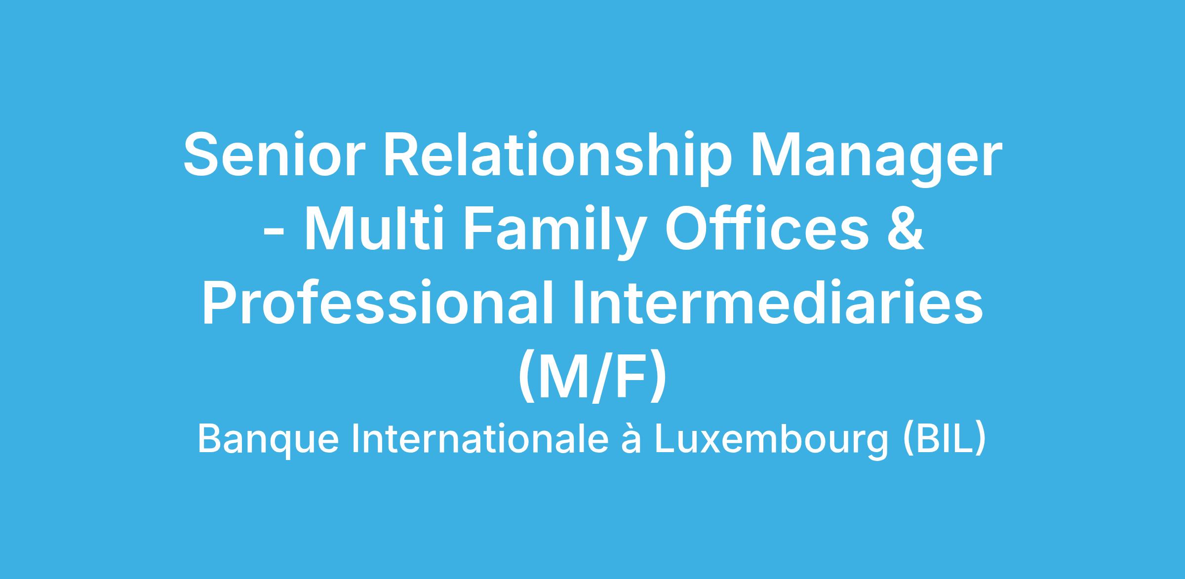 The position is based in Luxembourg, you will join a team of ~6 Relationship Managers focusing on those specific activities, within the Wealth Management division of BIL.