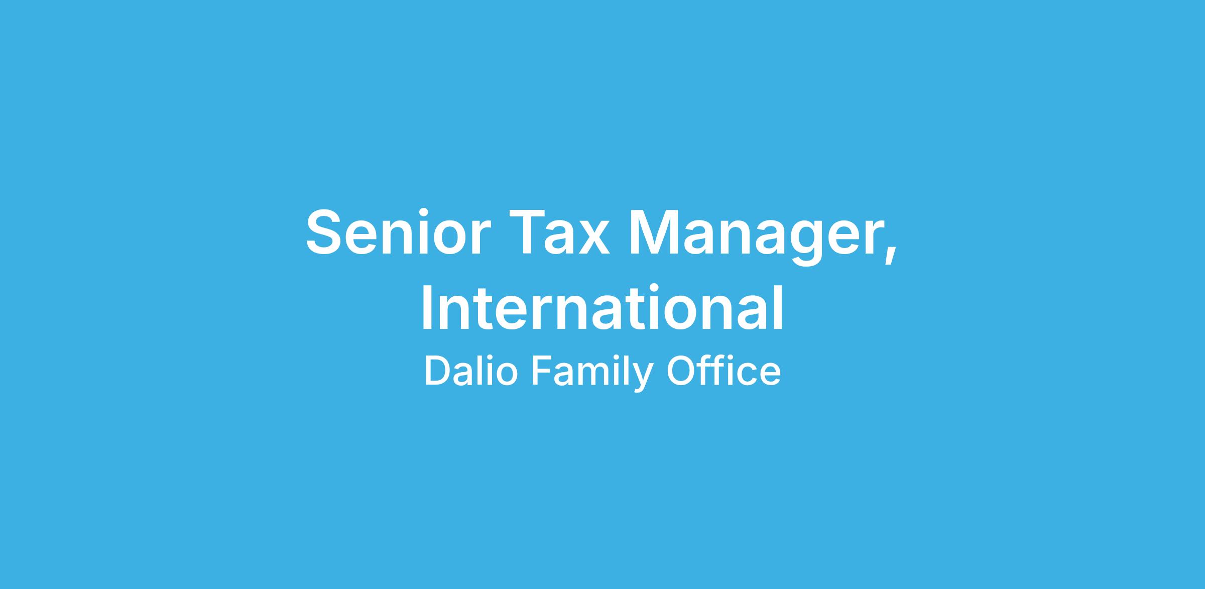 The Senior Tax Manager will be responsible for sophisticated tax compliance and related planning for DFO, its clients and related entities. The Dalio Family Office (DFO) supports Barbara and Ray Dalio and their family in their ventures and investments as well as their work through Dalio Philanthropies, including OceanX, Dalio Education, Endless Network, and the Beijing Dalio Foundation. The DFO is rooted in a culture of meaningful work and meaningful relationships and the family’s legacy of giving back. The right candidate can look forward to being challenged intellectually and expected to build long-lasting relationships, while managing a tax function representative of the founder's goals and standards. The office is headquartered in Westport, CT with a satellite office in New York City.