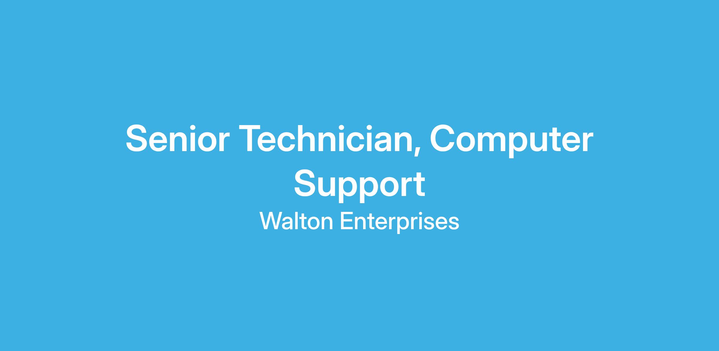 Walton Enterprises is seeking a skilled, highly motivated and entrepreneurial individual to join the team as a Senior Computer Support Technician. The ideal teammate will have the demonstrated ability to support a diverse organization with end user and high touch customer support.