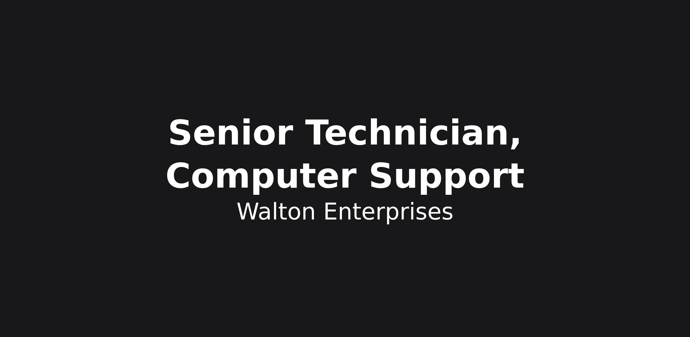 This position provides advanced technical support, troubleshooting, and system maintenance across both Windows and macOS environments. The Senior Computer Support Technician takes initiative to improve support processes, enhance end-user experience, and contribute to the continuous evolution of technology services at Walton Enterprises. The role requires a commitment to high-quality service delivery and collaboration across technical teams.