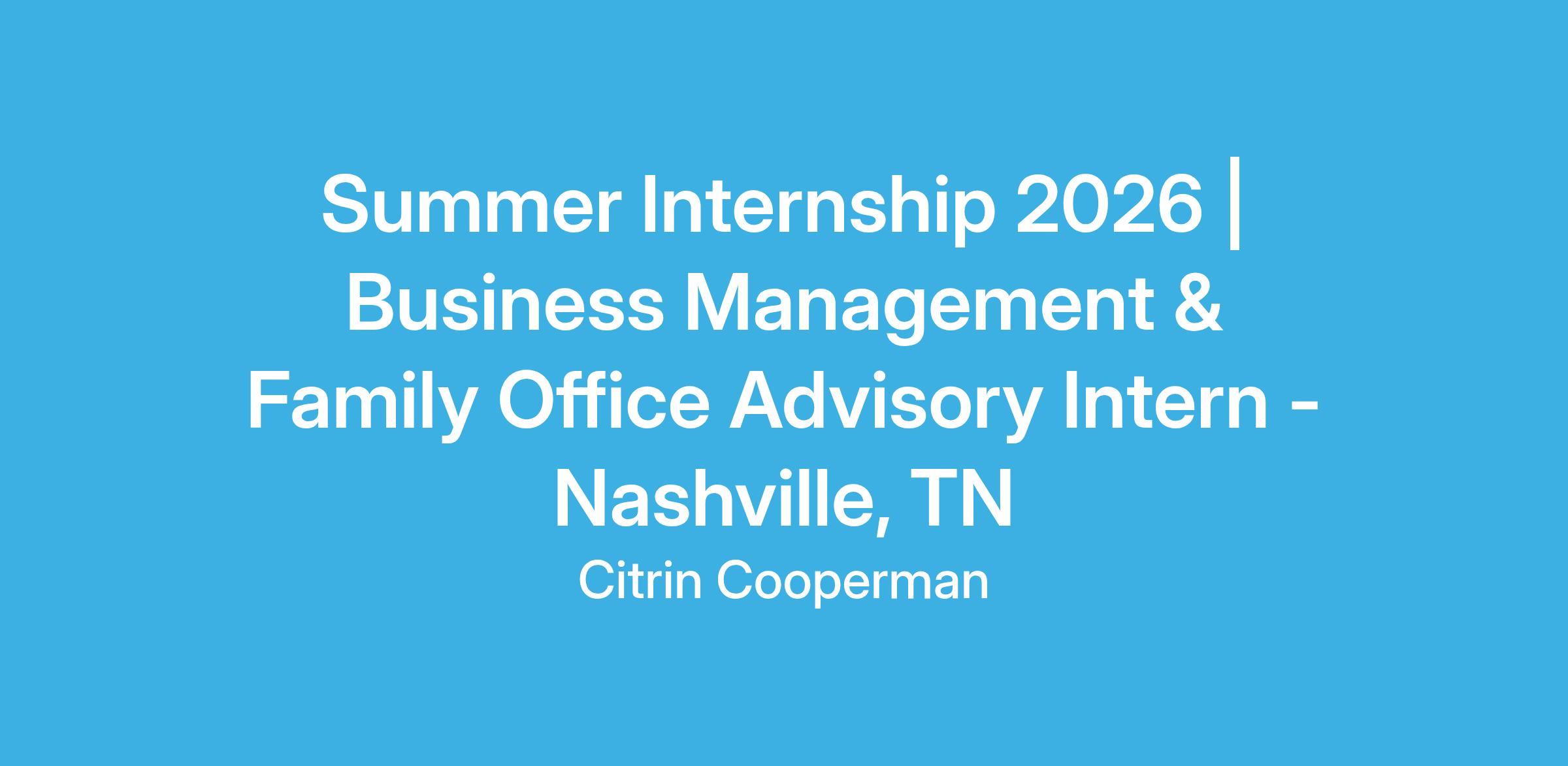 We are seeking an intern for our Business Management & Family Office (BMFO) department working in the firm’s Nashville office. The BMFO Intern is provided with tools and training to gain professional skills and experience. The internship is structured as a learning experience that combines class theory with real-world applications.