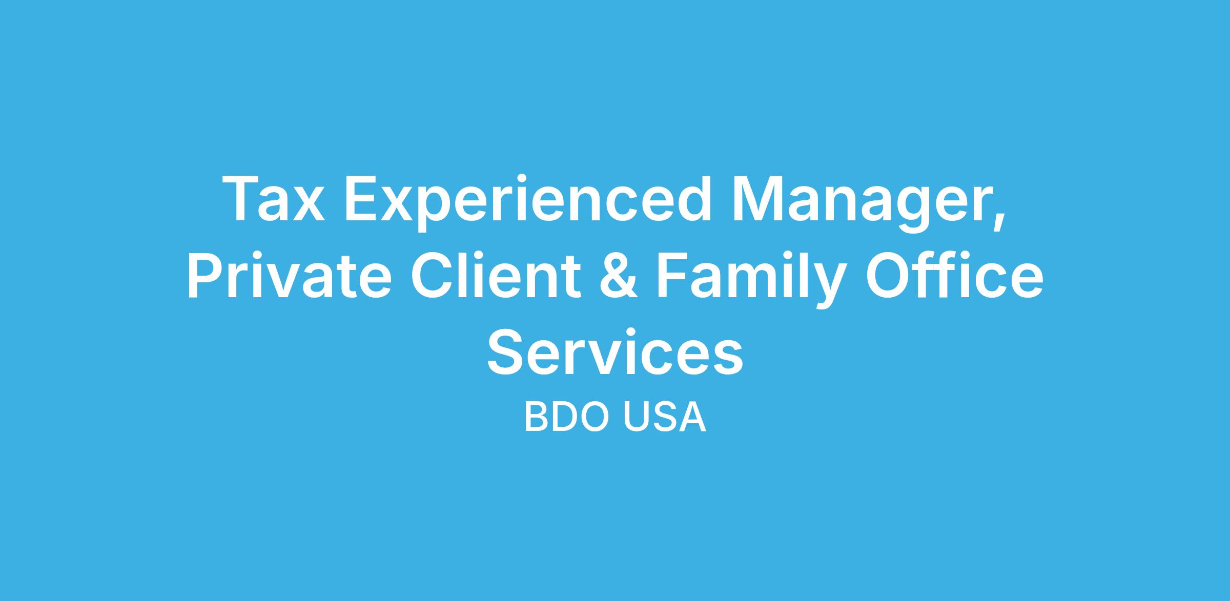 The Tax Experienced Manager, Private Client & Family Office Services (PCS-FOS) manages the full-life cycle of all assigned finance and accounting outsource engagements. Responsibilities include proposal development, staff assignment and oversight, final work product review and overall portfolio financial performance. In addition, the PCS-FOS Experienced Manager is responsible for client relationship management including regularly meeting with the client and assigned staff, reporting financial information and making financial management recommendations, timely billing and resolution of client issues. In this role, PCS-FOS Experienced Manager is charged with applying knowledge to understand potential tax issues, and recognizing, communicating potential risks and potential changes in the tax policy and making top-level decisions regarding filing, preparation and resolution of questions from federal / state agencies. In addition, the PCS-FOS Experienced Manager will be critical member of the office / region leadership team and actively participate in the marketing, networking and business development within an area of expertise and specialization while maintaining client relationships and acting as the primary contact for complex questions.