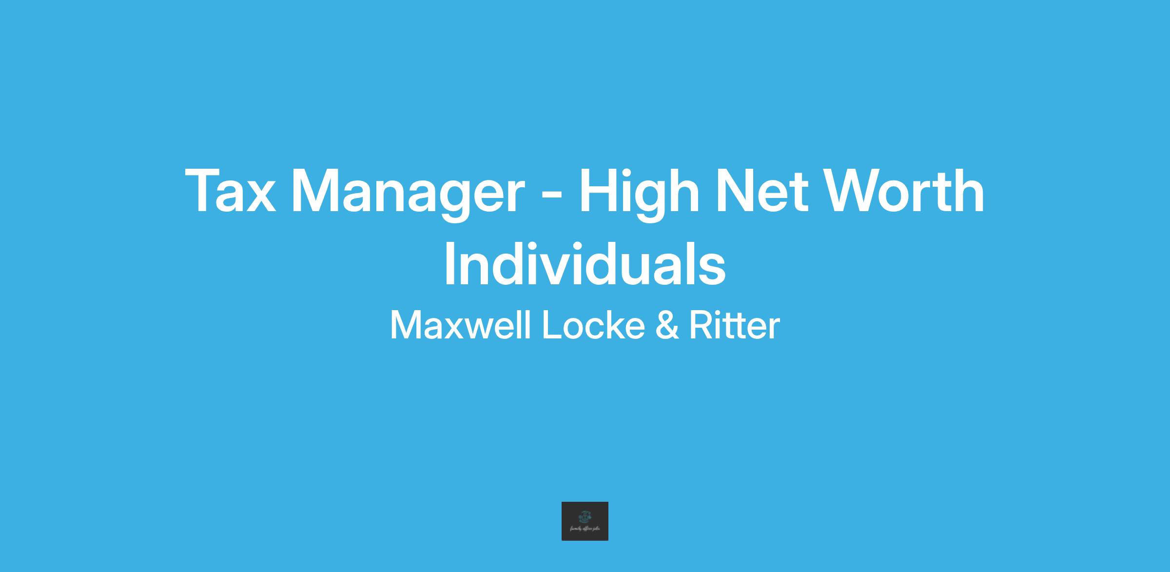 Tax Manager – High Net Worth Individuals & Family Groups (In-Person OR Hybrid)