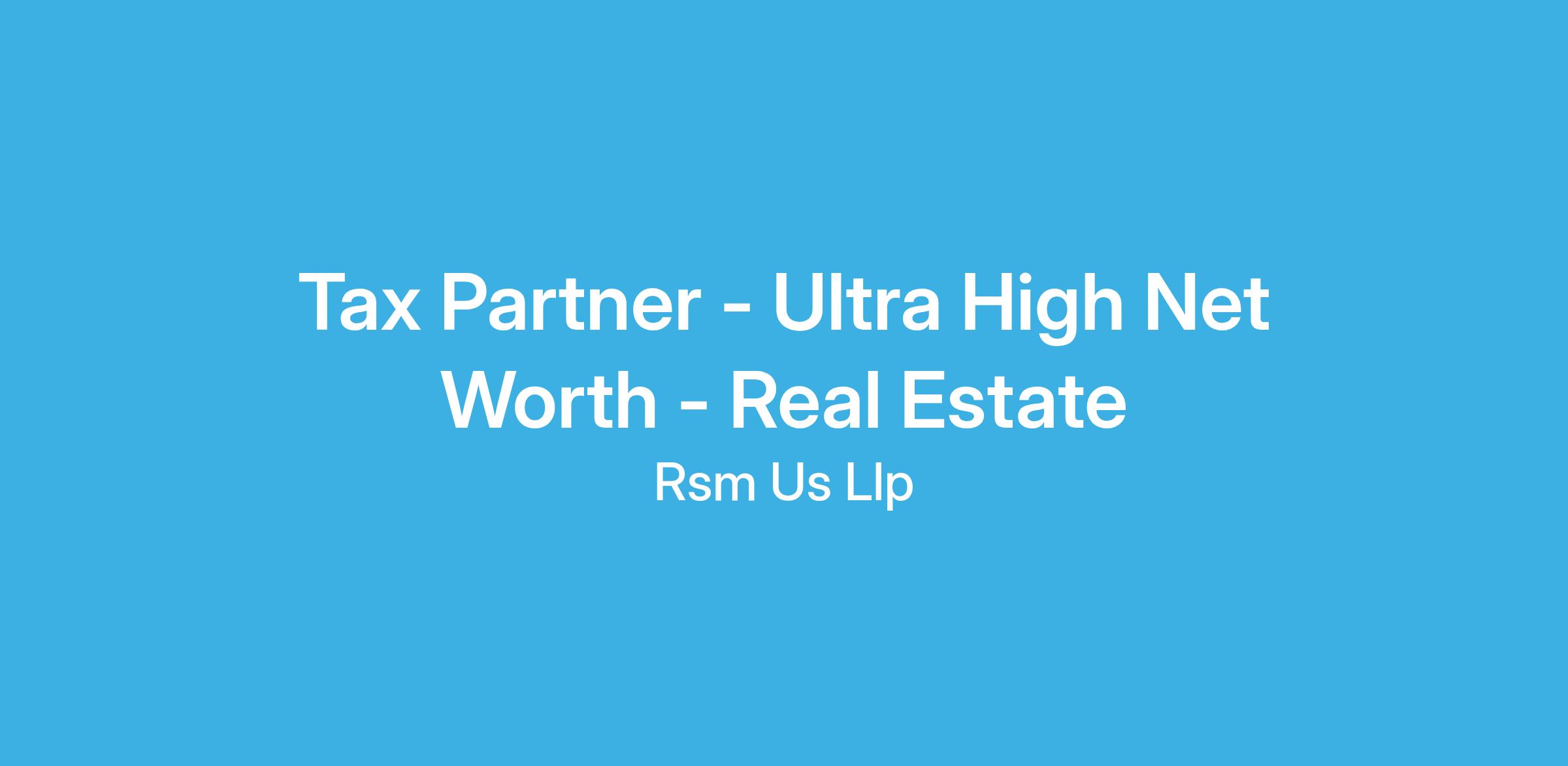 This partner would align to our UHNW practice but work very closely with the real estate team to augment the breath of tax compliance and consulting services for our real estate focused UHNW clients and family offices. You would immediately be integrating into the UHNW national leadership team to develop and learn from high functioning partners in other markets and would immediately be tasked with partnering on some very strategic clients. Candidates must be familiar with high net worth tax consulting and possess the analytical skills necessary for the effective diagnosis, development and implementation of solutions to clients' tax needs. With the support of the firm, you'll have the opportunity to develop and pursue creative approaches to resolve client issues.